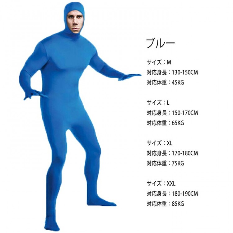 商品名:全身タイツ コスプレ 豊富な10色 レディース メンズ キッズ 子供 男女兼用 ハロウィン 衣装 仮装 顔出し 肌色 黒 緑 青 オレンジ ブロク インナー ストレッチ 余興 宴会 新年会 演しもの イベント パーティー 文化祭 忘年会 子供用