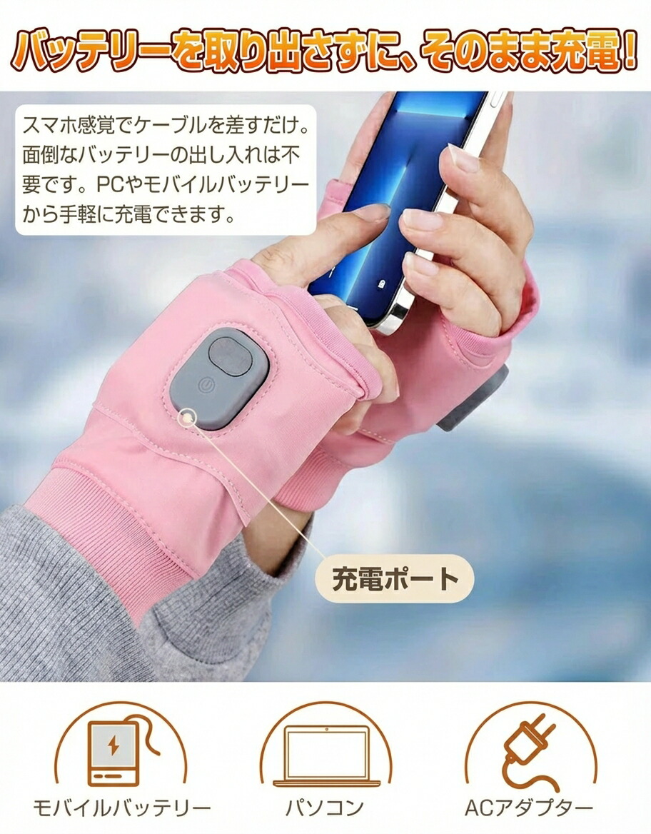 電熱手袋 電熱グローブ USB充電式 バッグ 小物 ブランド雑貨 豊富な品揃え ブラック ピンク グレー ブラック+ピンク ブラック+グレー ピンク+グレー