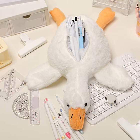 ペンケース 筆箱 メイクポーチ マルチポーチ ぬいぐるみ 人形 アヒル 鳥 かわいい アニマル ユニーク 韓国雑貨 小学生 中学生 高校生 レディース ギフト ふわふわ ホワイト 持ち運び 小物入れ