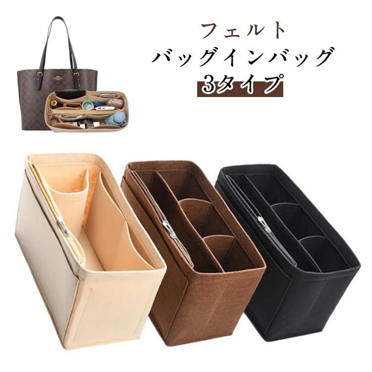 60 50 45 ファスナー付き インナーバッグ 対応 大きめ 大容量 フェルト バッグインバッグ 小さめ 自立 スリム 多機能 キーポル 旅行バッグ 軽量 整理整頓 ブラウン ネイビー 紺 しっかり