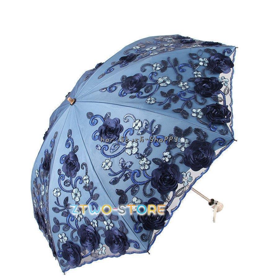 晴雨兼用 刺繍 立体的な花柄 UVカット 遮光 遮熱 持ち運び便利 紫外線対策傘 日傘 レース 折りたたみ傘 軽量 レディース