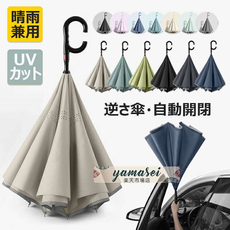 逆さ傘 長傘 ワンタッチ 自動開閉 晴雨両用 逆折り式傘 自立式 両手自由 UVカット 8本骨傘 反射テープ 手離れC型手元 紫外線遮断 遮熱 遮光 撥水加工 2重構造 強風 風に強い 雨の 梅雨季節