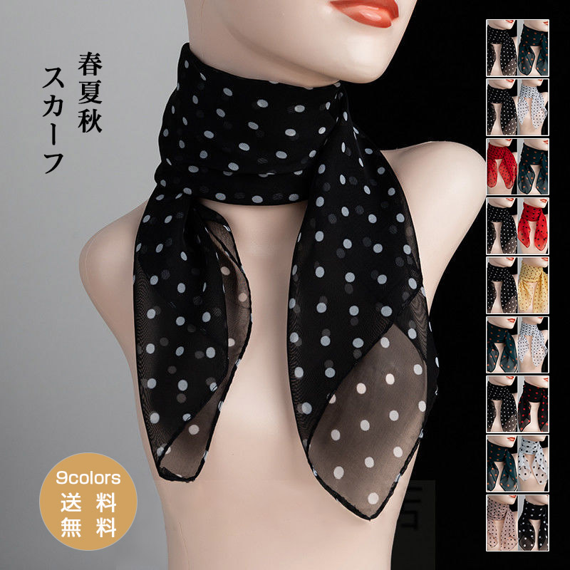 スカーフ 春夏秋 2点セット ドット柄 ネックスカーフ 首巻き レディース バンダナ 巻き物 贈り物 クリスマスプレゼント きれいめ 多機能