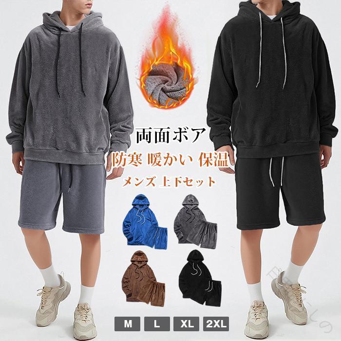 防寒冬用 裏起毛 厚手 ゆったり フード付き 多機能ポケット カーゴパンツ スウェット上下 ルームウェア 大きいサイズ 保温性抜群 快適着心地 メンズ冬 カーゴスタイル 防寒着 冬用セット 部屋着