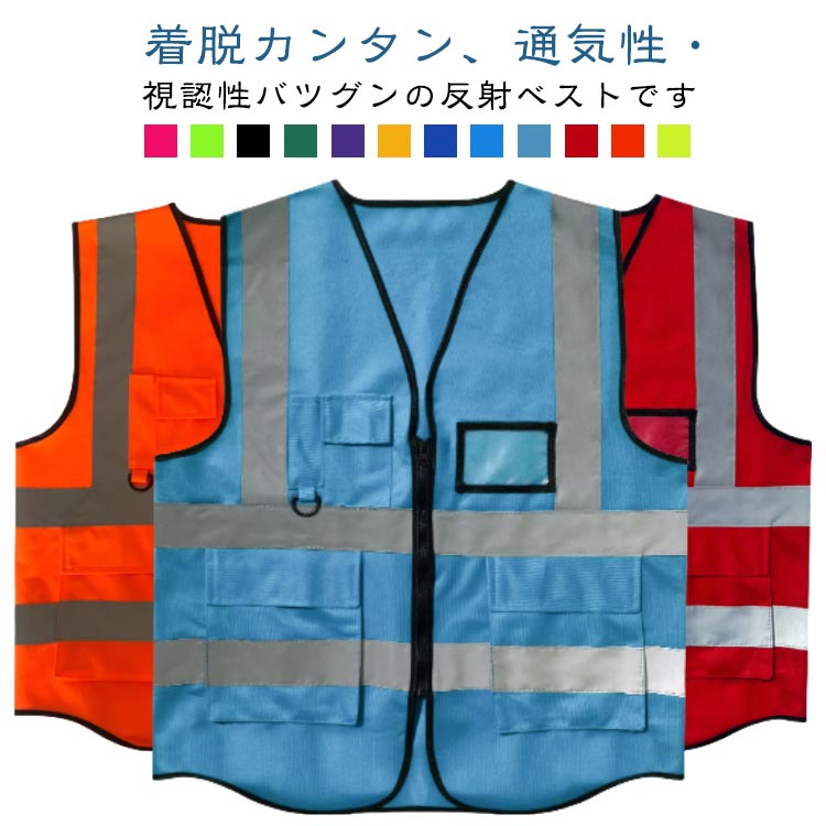 メッシュベスト 男女兼用 作業着 作業服 反射材 安全ベスト 反射ベスト 安全チョッキ 防犯パトロールベスト 送料無料