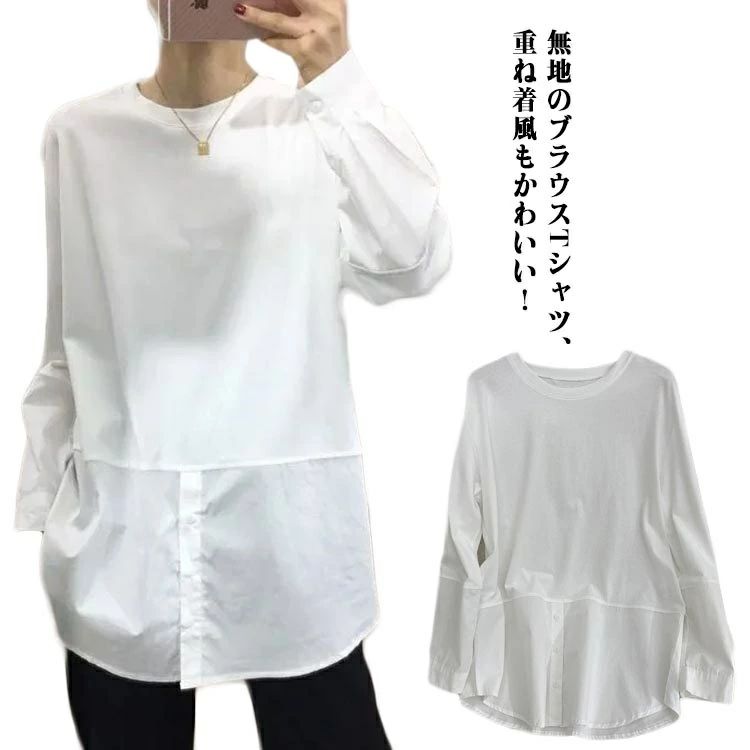 ブラウス 長袖 長袖tシ 重ね着 白 ロンT 綿 チュニック 切り替え シャツ 秋 トップス tシャツ 春 レイヤード
