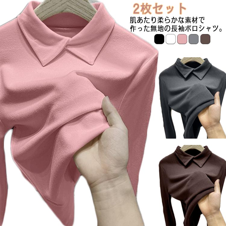 ポロシャツ カットソー レディース 長袖 春物 襟付き トップス スリム 春服 2枚セット tシャツ