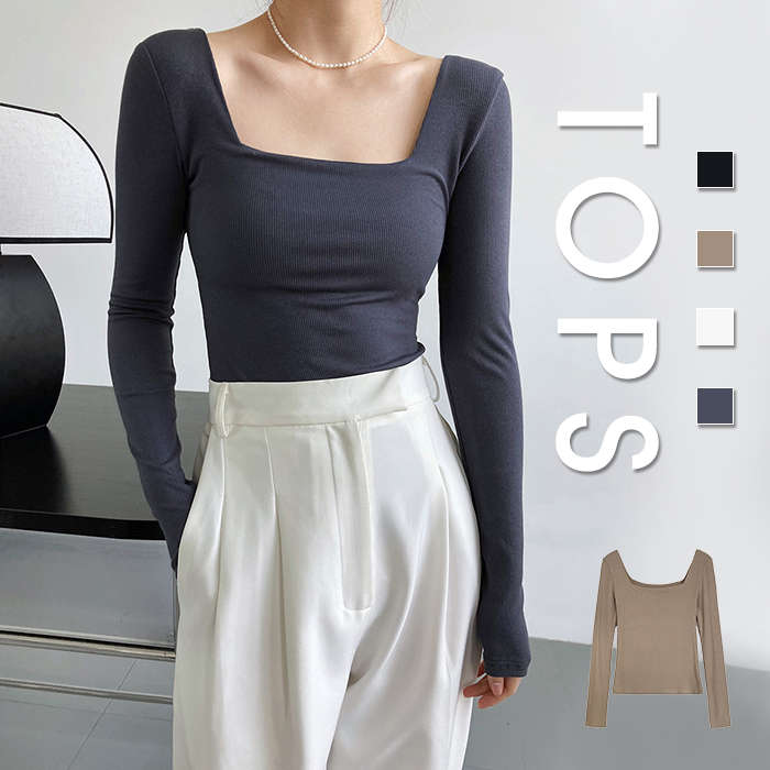 大人可愛い~ スクエアネックカットソー 秋 冬 春 大きいサイズ ブラック グレー ホワイト ベージュ 春秋 秋冬 プレゼント 贈り物 ギフト 20代 30代 40代 50代 送料無料 ♪