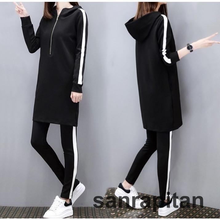 上下セット ジャージ スウェット 長袖パーカー ロング丈 チュニック 長ズボン ロングパンツ スリムパンツ セットアップ プルオーバー ハ レディース