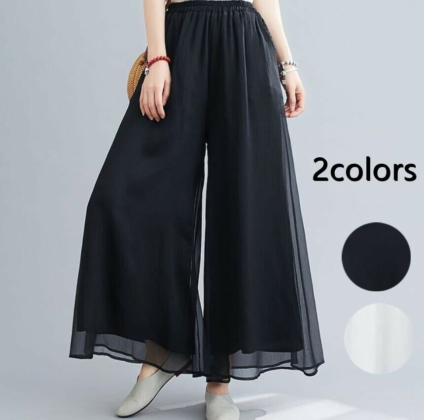 ヨガパンツ レディース ワイドパンツ ダンスパンツ インナー付き 体型カバー シフォン ふんわり ゆったり シフォンパンツ ボトムス 大きいサイズ 薄手 上品 着痩せ 5色 通気