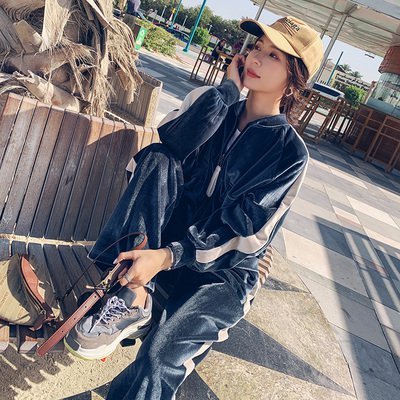 ワイドレッグ お出かけ ルームウェア セットアップ レディース カジュアル 快適 ツーピース ジャージ スポーツウェア デイリー シンプル 上下セット ポケット付き バイカラー 新作 ロング ベロア調