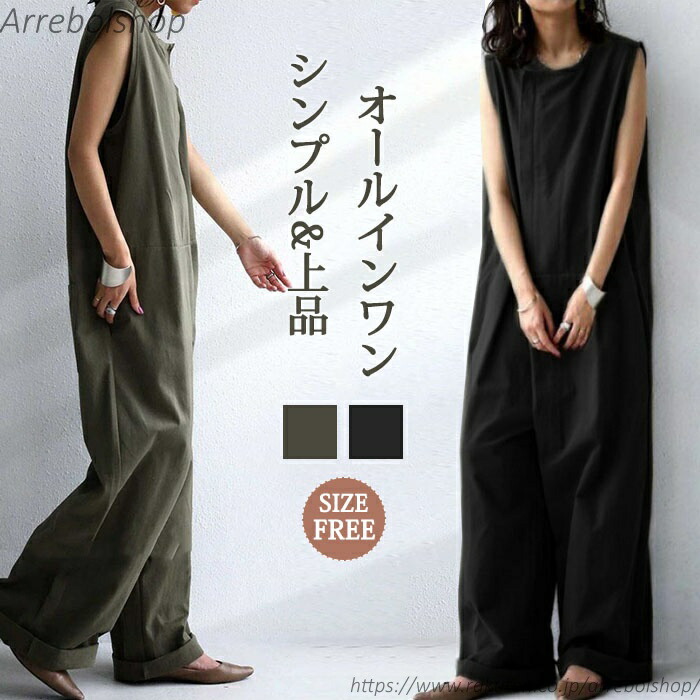 サロペット レディース パンツ ロング 春 夏 秋 オフィス 仕事 オールインワン ゆったり キャミ ワイドパンツ カジュアル ナチュラル 20代 30代 50代 つなぎ 体型カバ 40代