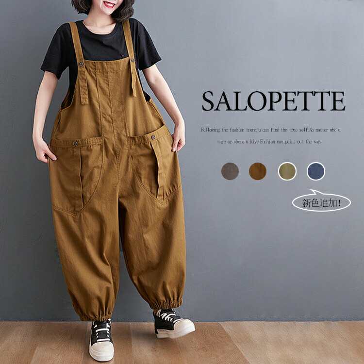 【送料無料・即納】サロペット レディース 肩紐長さ調整 5色 サロペ ゆったり ワイド パンツ 体型カバー 春 夏 低身長 オールインワン パンツ 母の日 30代 40代 20代