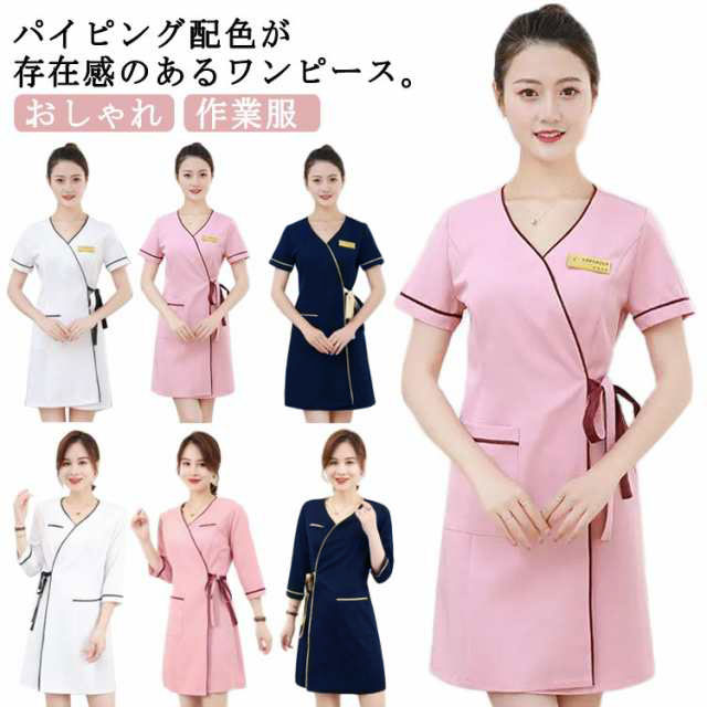 ユニフォーム エステ サロン通勤 レディース 女性 制服おしゃれ 半袖 七丈袖ジャケットワンピース ネイル サロン 歯科衛生士 制服 美容
