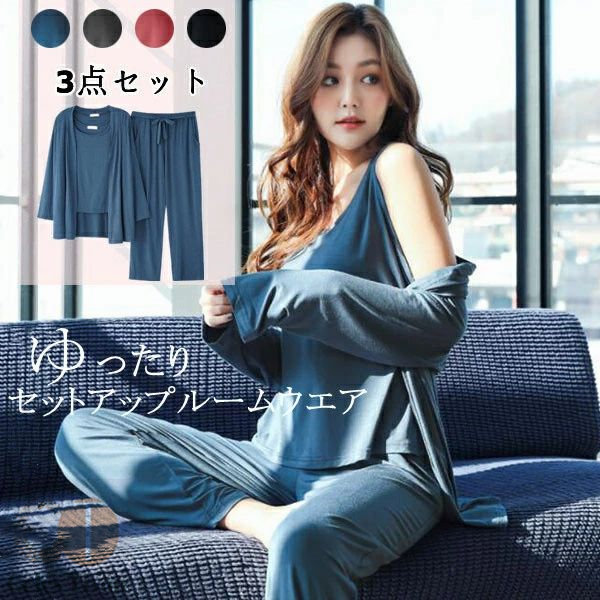 ルームウェア レディース おしゃれ セットアップ部屋着 トップス キャミソール ロングパンツ ナイトガウン 3点セット 上下 長ズボン