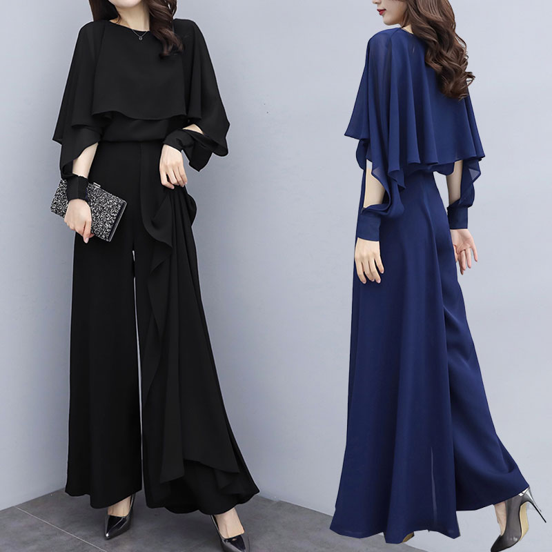 パンツドレス 結婚式 ツーピース レディース セットアップ 2点セット パーティードレス パンツ ドレス パンツスーツ ワイドパンツ フォーマル シースルー 袖あり 体型カバー 発表会 二次会 ロング