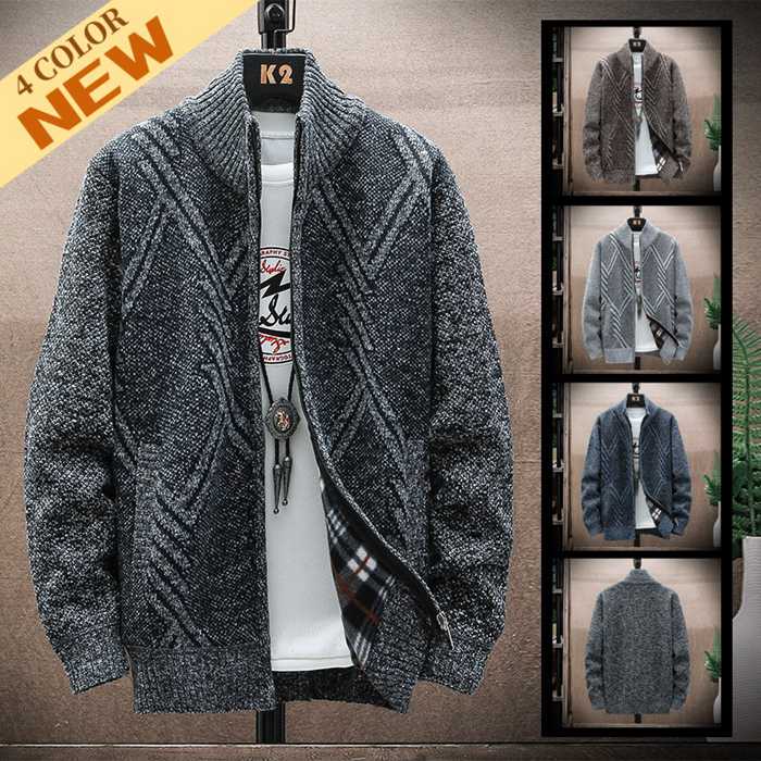カーディガン メンズ ニット ニットカーディガン ジャケット 秋冬 裏起毛 ハイネック 無地 アウター 厚手