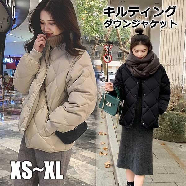 フードなし ダウンジャケット レディース 秋冬 体型カバー キルティングジャケット 撥水 軽量 防風 防寒 あったか ダウン ショート丈 襟なし ボタン ポケット付き 羽織り 通学 きれいめ 黒 通勤