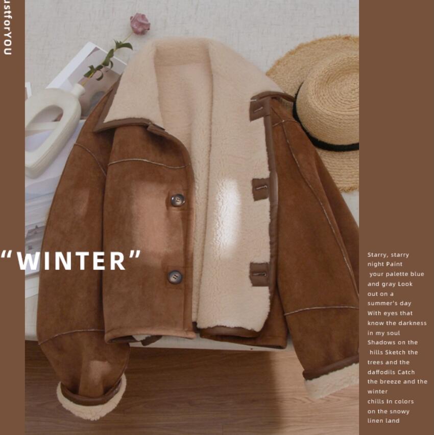 ラムウールコート ボアコート ラムコート 厚手 秋冬 レトロ コート ジャケット ルーズ ベルベット リバーシブル アウター