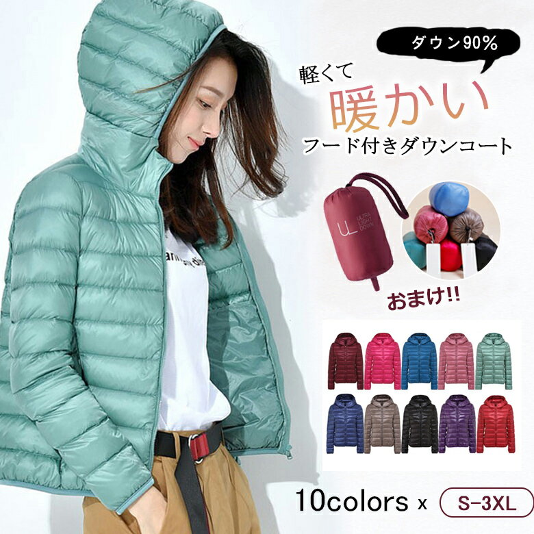 超軽量 ダウンコート フード付き レディース ダウン90% コート ダウンジャケット アウター カジュアル ファッション 純色 10colors 大きいサイズ 20代 40代 50代 きれいめ 30代