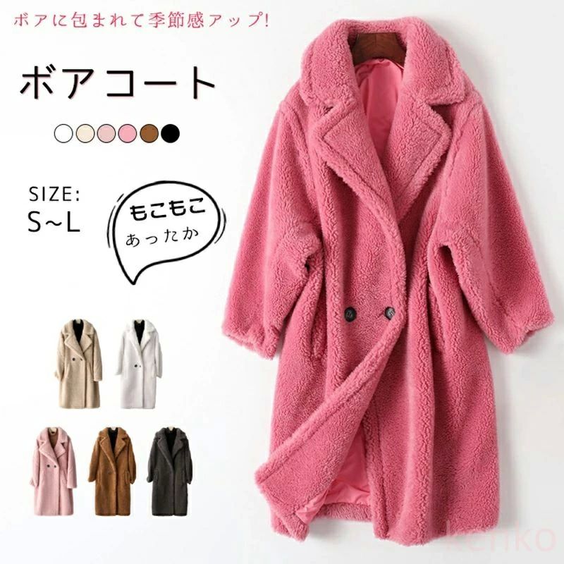 テディベアコート ロングコート レディース 大人 オフホワイト ブラック グレー キャメル ベージュ ピンク ブラウン ローズ レッド パープル