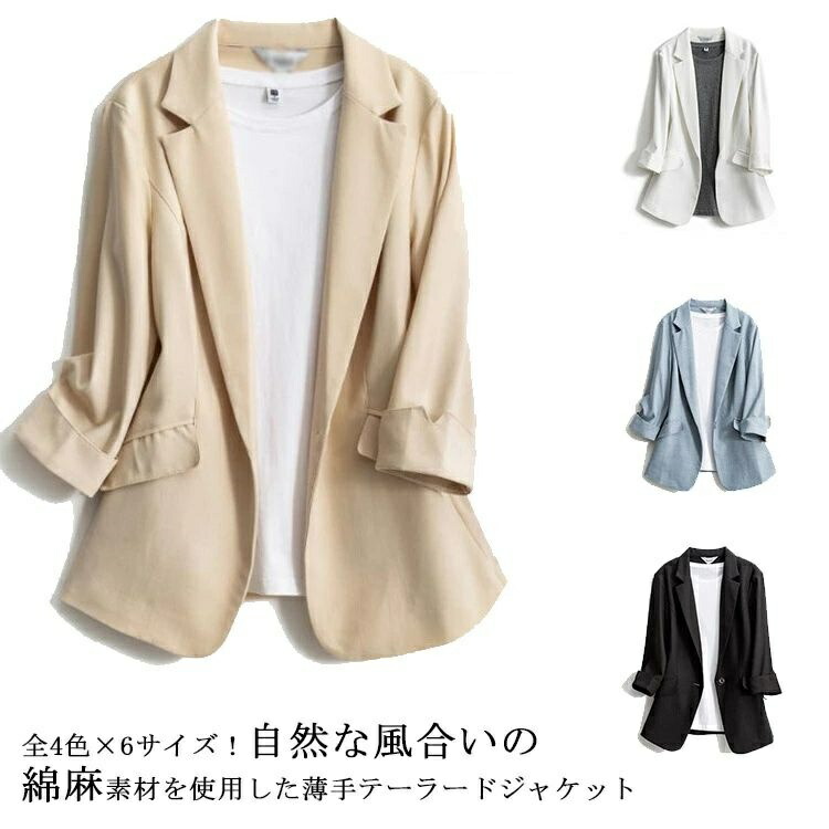 春 無地 6L 5L 大きサイズ リネンジャケット 夏 アウター レディース 上品 テーラードジャケット ジャケット 秋
