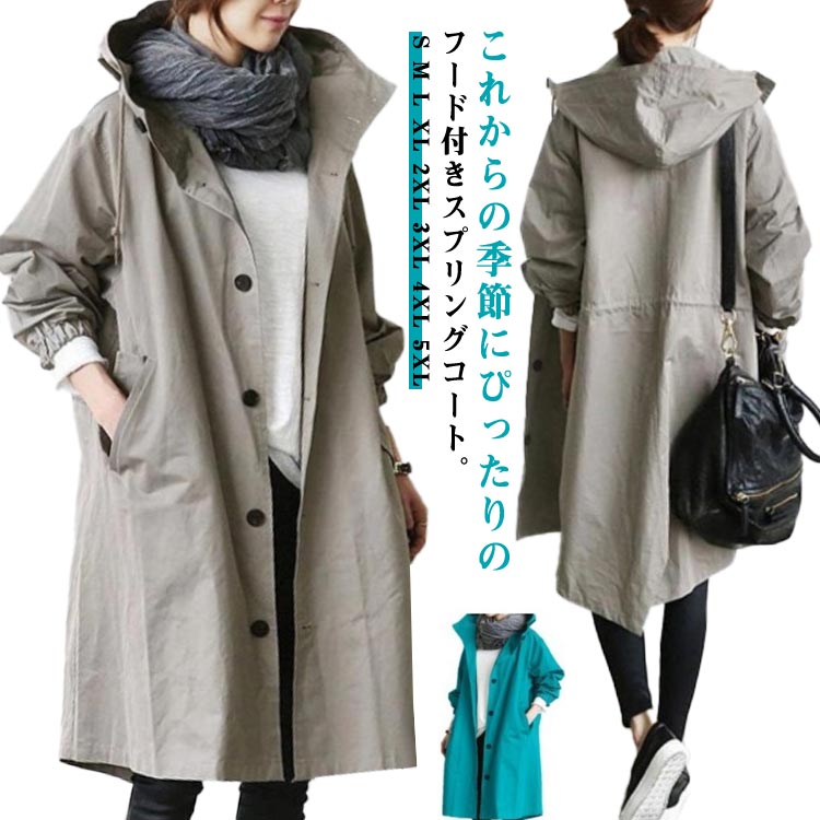 スプリングコート フード付き 春コート レディース トレンチコート アウター ロングコート ライトアウター 20代 30代 40代 50代 春物 春服 ロング丈 春 秋 ママコート マウンテンパーカー