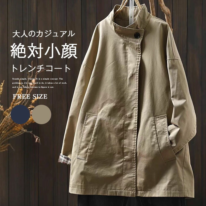 トレンチコート レディース ロング 春 秋 通勤 カジュアル スタンドカラーコート ロングジャケット 羽織り ミドル丈 スプリングコート ジャケット 大きいサイズ アウター 上品 体型カバー コート