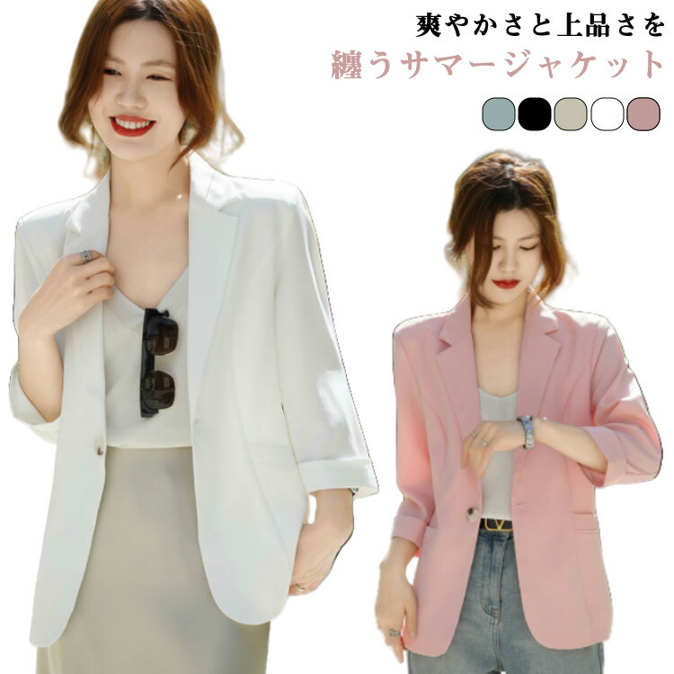 夏 サマー テーラードジャケット 裏地なし テーラード レディース カジュアル 肩パット きれいめ サマージャケット 薄手 7分袖 接触冷感 涼しい スーツジャケット ゆったり ア UVカット
