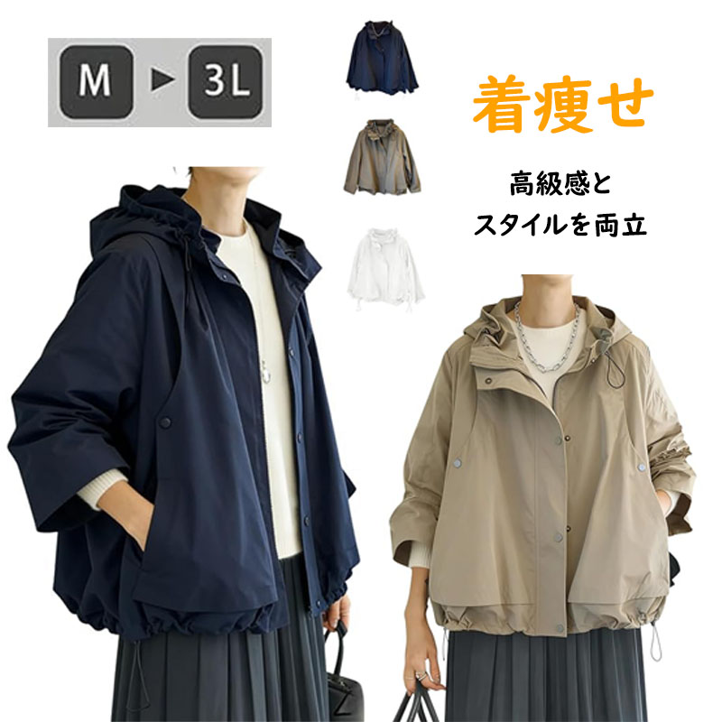 スプリングコート レディース マウンテンパーカー 大きいサイズ 春 秋 春服 アウター 長袖 ジャケット フード付き ゆったり ミドル丈 無地 薄手 コート きれいめ 春秋 ライトアウター シンプル