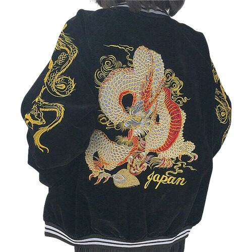 刺繍ラインアウタースタジャンスカジャンジャケットベースボールダンス衣装ヒップホップレディースメンズガールズストリート黒ブラック赤レッド龍ドラゴンベロア奇抜派手個性的大きいサイズ