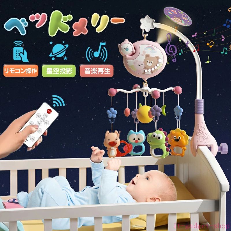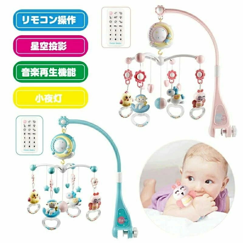 ベッドメリー アーム 回転 ベビーカーメリー オルゴール 床置き 手巻き ベビー メリー モービル 投影機能搭載 リモコン操作 赤ちゃん おもちゃ インテリア 子供用寝具 誕生日 寝かしつけ用寝具