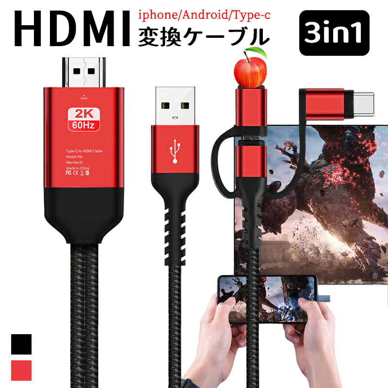 iphoneミラーリング iPhone HDMI 変換 ケーブル 変換アダプタ 携帯からテレビ 携帯画面 スマホの画面 をテレビに 映す 同時充電 設定不要 3in1 4k