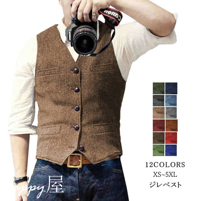 ベスト メンズ スーツ ジレ ツイード ウール スリム 大きいサイズ シングル 細身 ビジネス 結婚式ベスト フォーマル 紳士 卒業式 男性用 春 夏 秋 ールドアメリカン アメカジ プレゼント 冬