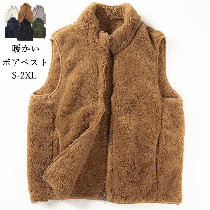 フリースベスト ボア メンズ ジップベスト 柔らかな肌ざわり ベスト 防寒 あったか ジャケット ふわふわで暖かいボアベスト 保温 無地 防寒ベスト クリスマス 秋 冬