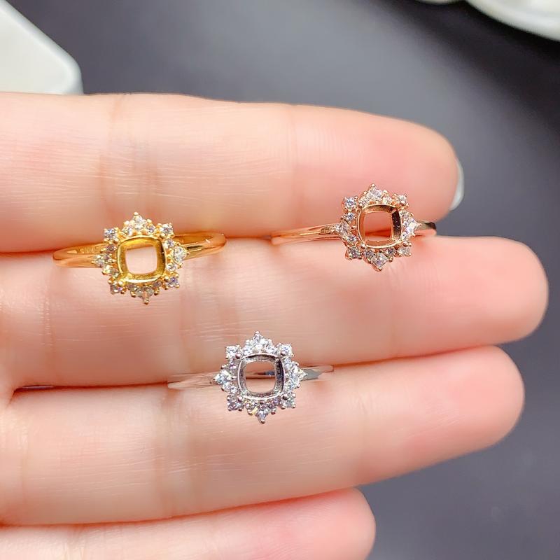 指輪 レディース S925シルバー フリーサイズ 空枠 クッションカット 5x5mm 18Kメッキ ホワイトゴールド ローズゴールド 豪華 エレガント 宝石セッティング用 イエローゴールドカラー