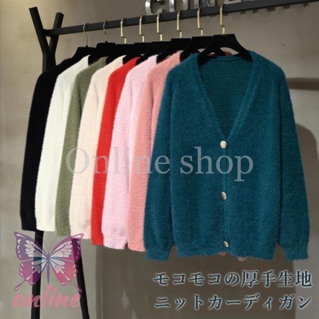 ニットカーディガン Vネック レディース カーディガン 厚手 ニットコーディガン モコモコ レトロ コーディガン 通勤 ボタンカーディガン