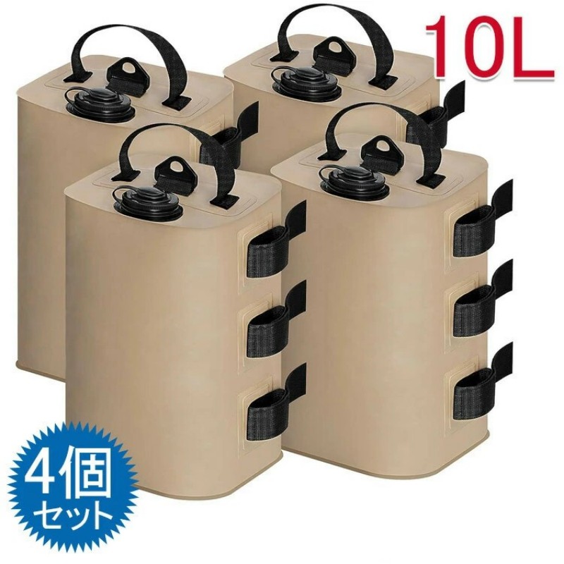 テント 重り 4個セット ウェイトバッグ おもり マルチウェイト 10リットル タープテント用 バンドテープ付き 注水タイプ 屋外 ワンタッチタープ ビーチパラソル 万能ウェイ 重し袋