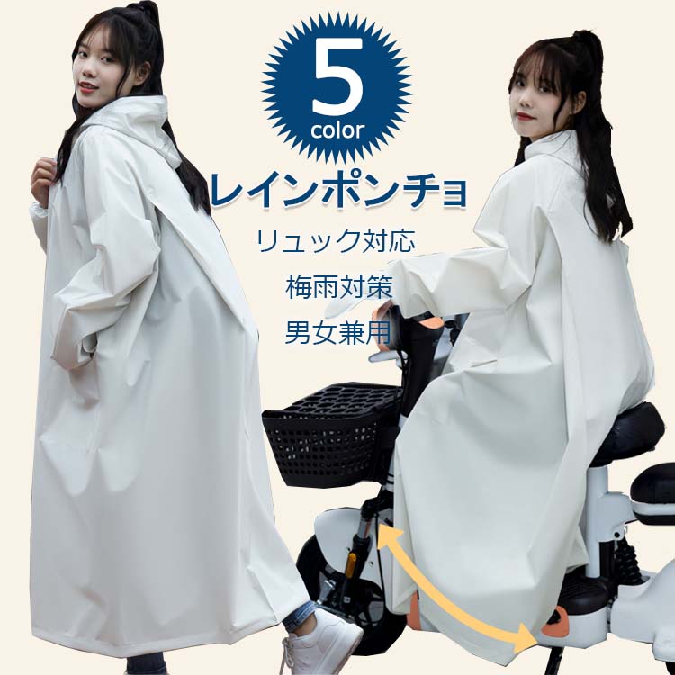 \送料無料/フード リュック対応 ヘルメットの上からかぶれる大きなフード 自転車 リュックコート ロング丈レインコート 手袋付き 通勤用 自転車通学用