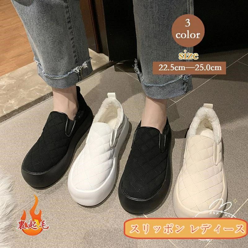 スリッポン レディース スニーカー 冬 黒 きれいめ 厚底 あった