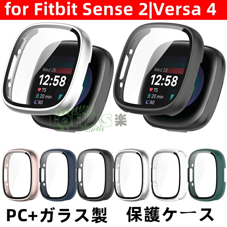 2 ケース 保護 ガラスフィルム 一体型 4 ケース 2 4 カバークリア フィットビット センス ツー スマートウォッチ ガラス画面保護 バーサ4