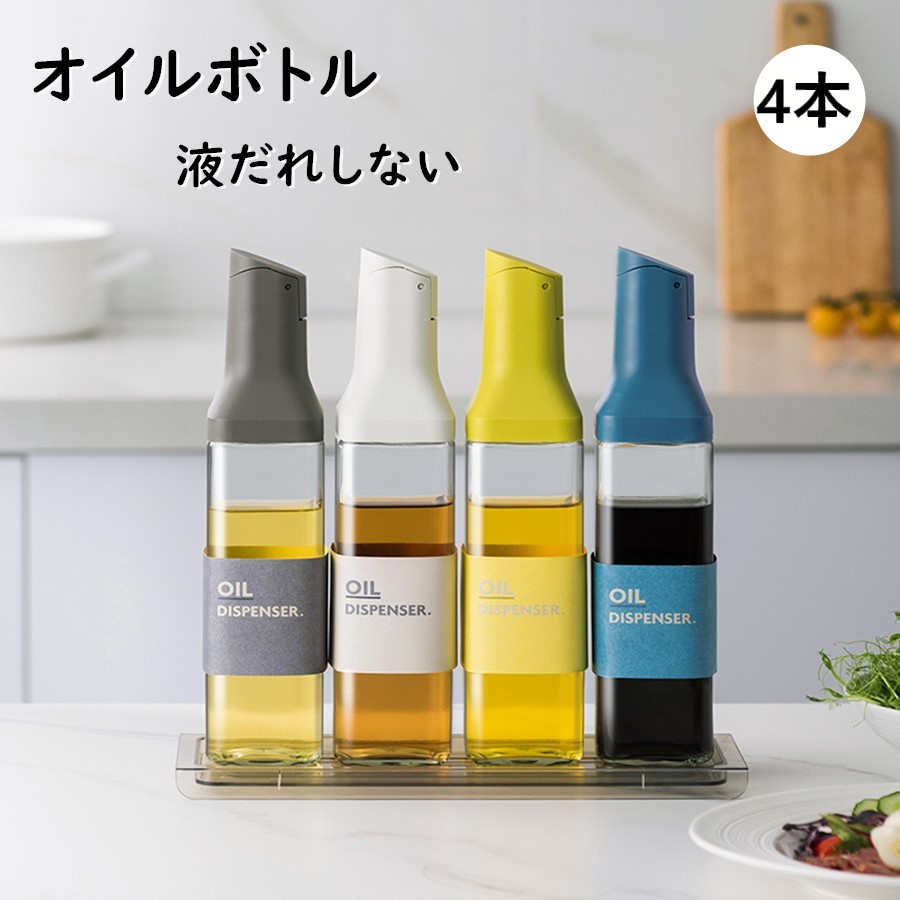 オイルボトル 醤油差し 4本セット スタイリッシュ 片手 ガラス 調味料入れ 油入れ ドレッシングボトル 調味料 ビン オイル差し 醤油 酢 ビネガー オイル 容器 500 料理用 ギフト