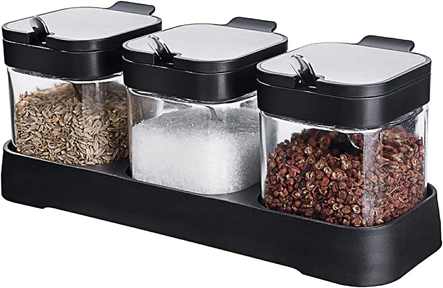高級感あふれる調味料入れ 3個/4個セット スプーン付き 密閉容