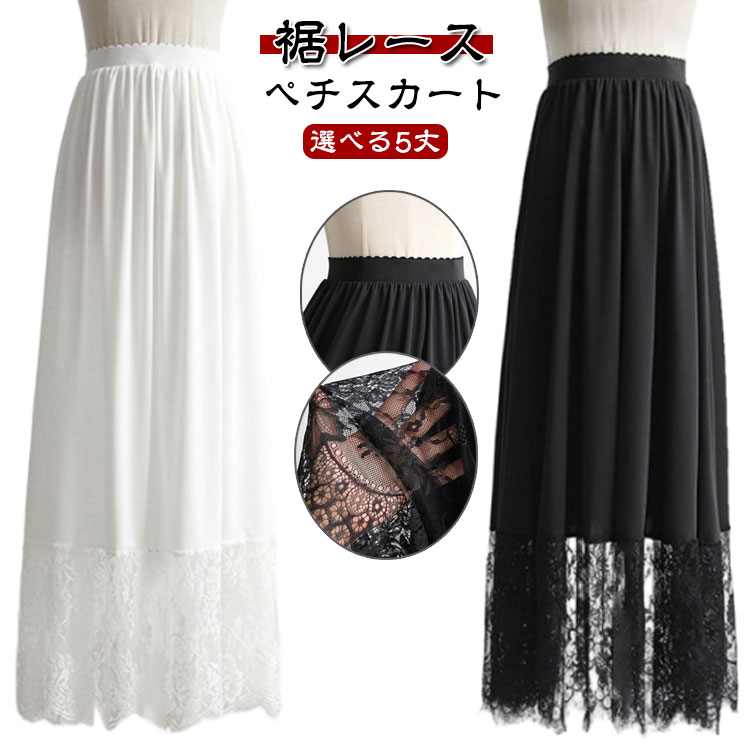 レース ペチコート 重ね着 スカート ロング インナースカート レース 黒 白 ブラック スカート