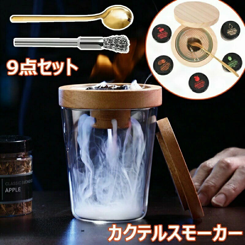 カクテルスモーカーキット 9点セット 燻製器 家庭用 スモーカーキット グラス 燻製 5種類木製チップ付 スモーク ウイスキー くんせい器 フードスモーカー 燻製キット スモークマシン カクテ キット