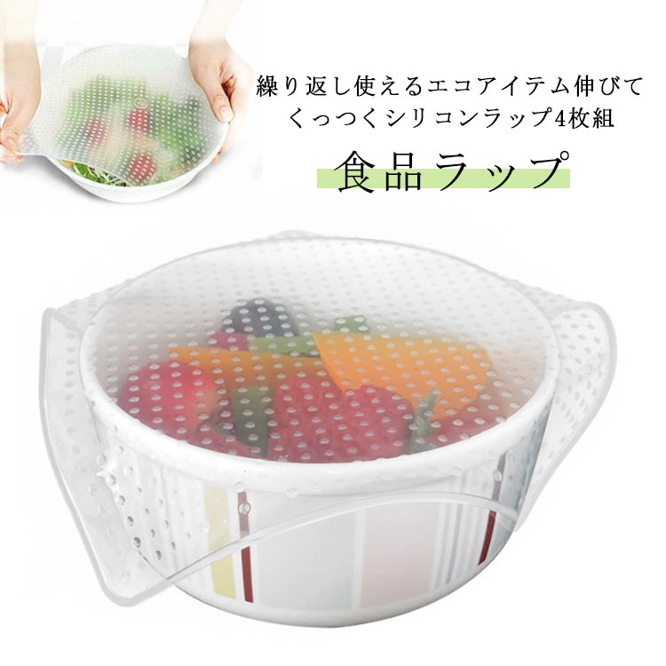 エコ シリコンラップ 食品ラップ シリコン 3種類 4枚セット電子レンジ 冷蔵庫OK エコラップ ラップ 保存 1枚セット くり返し 繰り返し シリコン蓋 繰り返し使える 節約 シリコン製