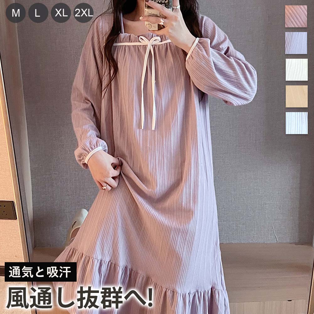 ネグリジェ ルームウェア レディース パジャマ ワンピース ルームワンピース 可愛い 長袖 ルーム パジャマ 寝巻き マタニティ ルームサプリ コットン 柔らか ロング丈 ナイトウェア 可愛
