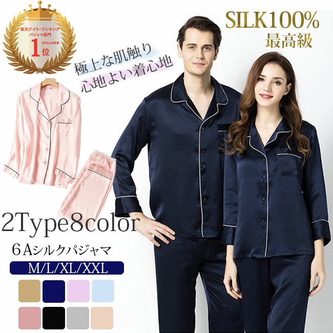 パジャマ シルク100% 冷感 レディース メンズ 保湿 保温 長袖 19匁 絹 シルクパジャマ 涼しい 敏感肌 女性 男性 半袖 前開き ナイトウエア ルームウエア ネイビー ブルー 母の日 ピンク