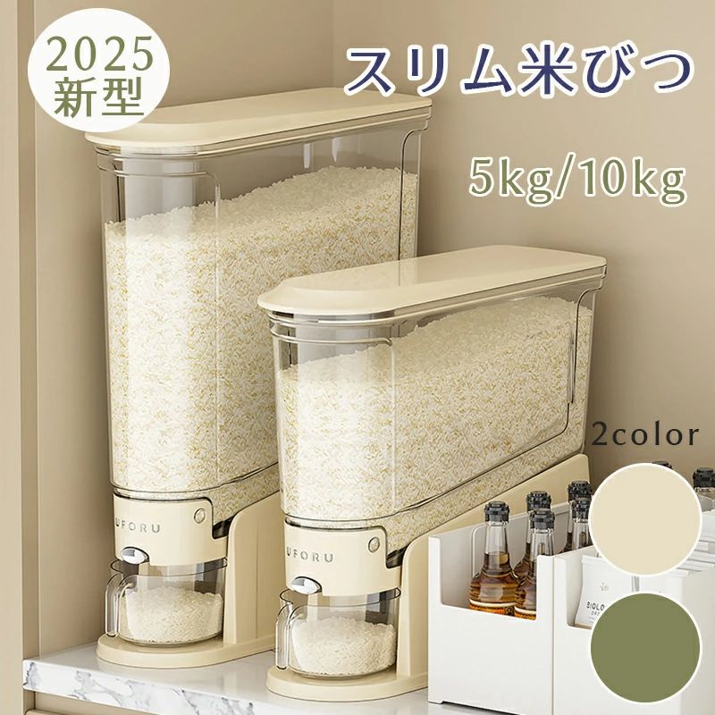米びつ 2025新型 ライスストッカー 米櫃 こめびつ スリム ボタン押しタイプ 5kg 10kg お米収納 無洗米対応 米びつケース 台所 キッチン 細い 省スペース 2colo コンパクト