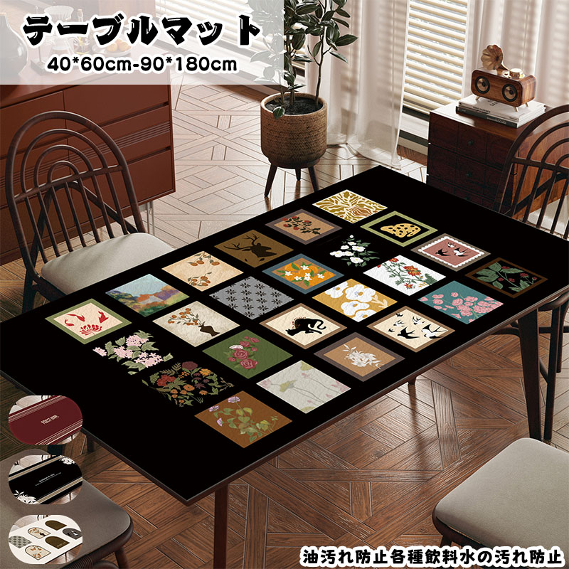 食卓カバー おしゃれ 洗濯可 長方形 レース付き 汚れ防止 シンプル 高級感 インテリア テーブルマット テーブルカバー 北欧風 花柄 レトロ 鳥模様 黒 白